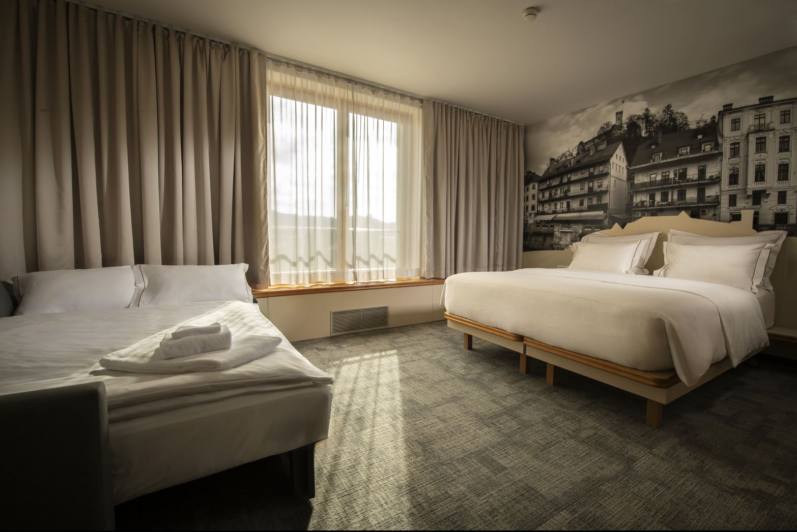 Ogni camera presenta una carta da parati unica, con fotografie in bianco e nero del noto fotografo lubianese Žiga Koritnik. Questo lega l’albergo al concetto unificante di città all’interno della città, “City within the City”, che riflette lo spirito vivace ma rilassato della città di Lubiana. La combinazione di comfort ed eleganza delle nostre camere cattura magnificamente l’essenza dell’affascinante capitale della Slovenia.